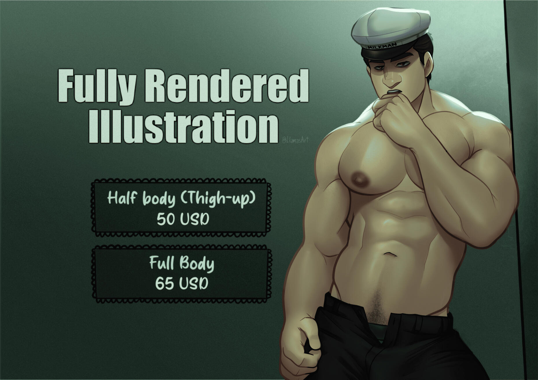 * Extra/Additional Characters will be charged 50% of the base price.* Variation/Alternate Versions may cost extra depending on the amount of details. (starts at $5 per character)Alts (e.g expression; mouth, eye/s closed or open, props, body hair/clean, soft/erect, clothes/naked etc.)Note (NSFW): if the commissioned character is already naked, either soft/erect as a default, then it already counts with the base price :)